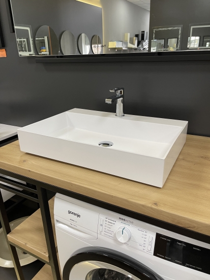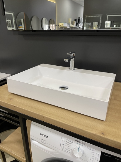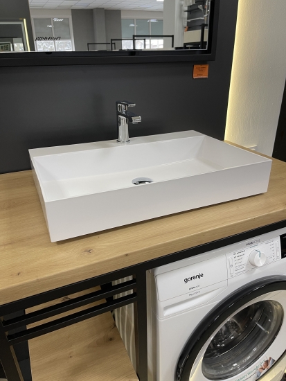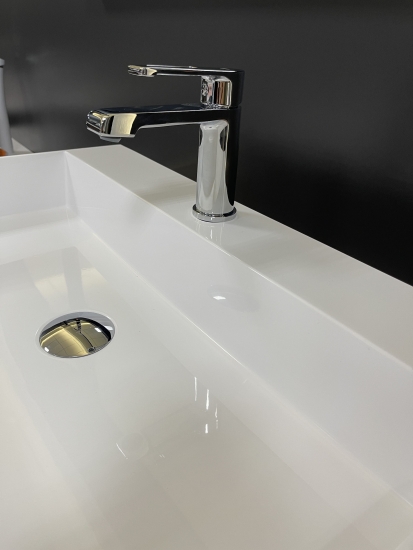 Набір для ванної кімнати Adamant QUANTO 100 складається з раковини зі штучного каменю, змішувача та сифона Click-Clack. Раковина прямокутної форми має розміри 100 х 44,7 х 14 см, білий колір та отвір для переливу. Змішувач Kroner KRP Edelstahl Klassisch ESG010 оснащено аератором, металевим важелем та стаціонарним виливом довжиною 12 см з хромовим покриттям. Сифон Soloplast Тюльпан 0515 забезпечує мокрий гідрозатвор, автоматичне відкриття зливу та функцію переливу.