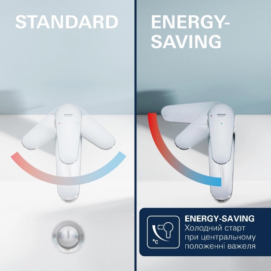 - Керамічний картридж GROHE SilkMove Energy Saving 28 мм з функцією холодної води.