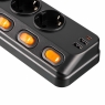 Мережевий фільтр 2E 2E-SP6M3SWBK Black, 6 розеток, 1xUSB-C, 2xUSB, 3м