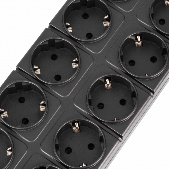 Подовжувач мережевий 2E 3м, 10xТипF, 16A, 3xUSB-A, 1xUSB-C, фільтр, чорний
