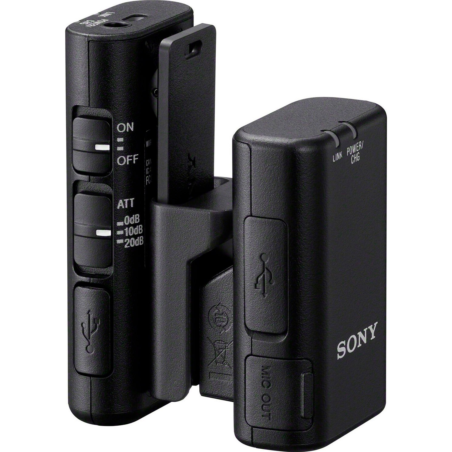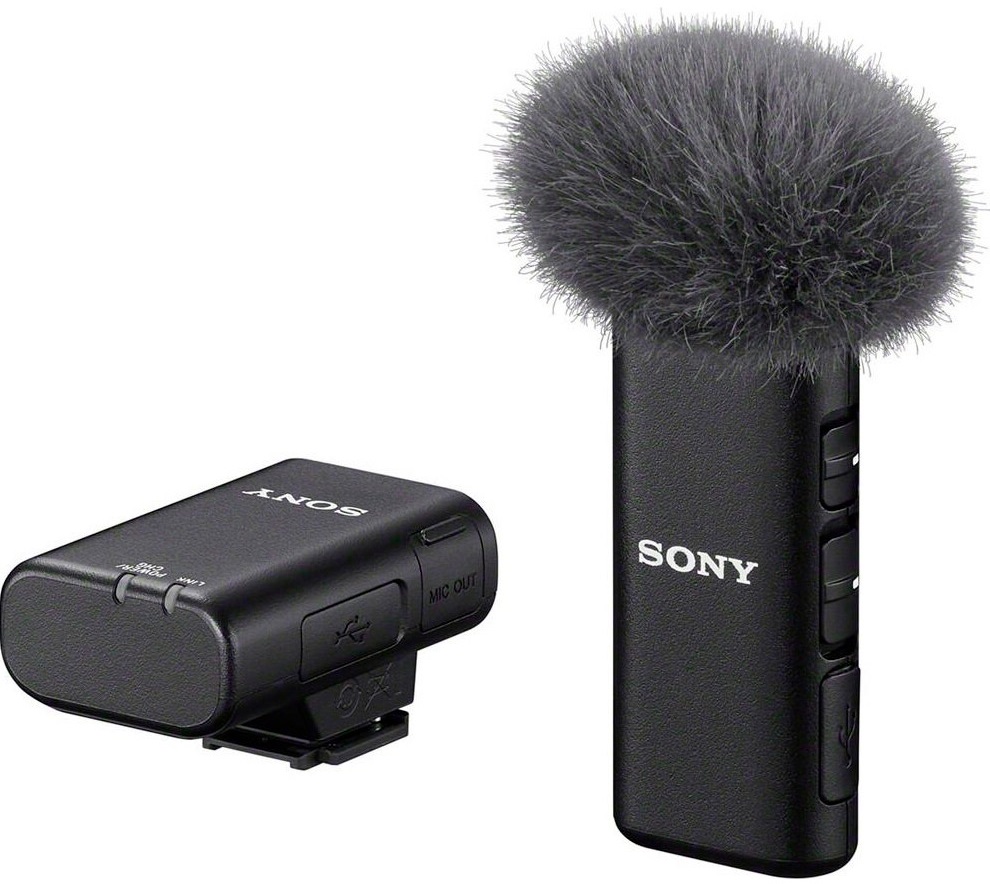 Мікрофон Sony ECM-W2BT складається з передавача з кліпсою для кріплення на одяг та ресивера для камери. Дальність зв'язку до 200 м у відкритому просторі дозволяє гнучко пересуватись під час зйомки. Вбудовані акумулятори забезпечують до 9 годин роботи з підзарядкою через USB. Вітрозахисна сітка зменшує шум на відкритому повітрі. Корпус у чорному кольорі має компактний дизайн для непомітного використання.