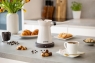 Gorenje TCM350W — компактна кавоварка для класичної кави по-турецьки без плити. Колба на 0,35 л розрахована на 4 маленькі порції, а 800 Вт забезпечують швидкий нагрів. Поворотна база 360° зручна для встановлення з будь-якого боку, подвійний носик дозволяє акуратно розливати правою або лівою рукою. Кнопка Увімк./Вимк. з індикатором робить керування простим, протиковзні ніжки додають стійкості, шнур ховається в основу. Пластиковий корпус легко мити, а системи безпеки оберігають від перегрівання.