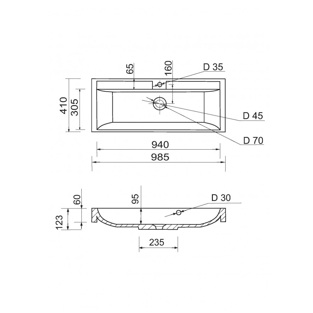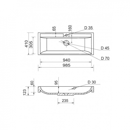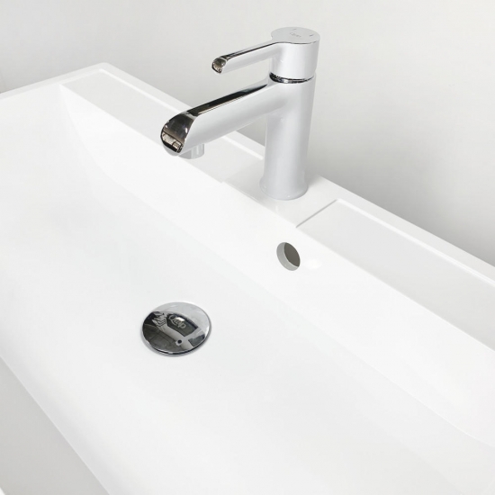 Опис Раковина, умивальник Adamant STRENG NEW, штучний камінь, прямокут., з отвором для змішувача, з отвором для переливу, 990x410x123мм, накладний, білий