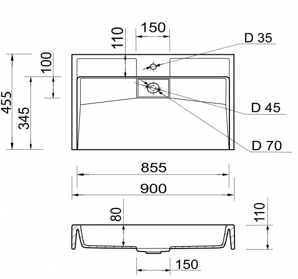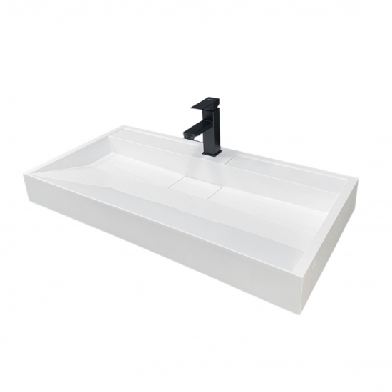 Опис Раковина, умивальник Adamant VISION, штучний камінь, прямокут., з отвором для змішувача, без переливу, 900х455х110мм, накладний, білий
