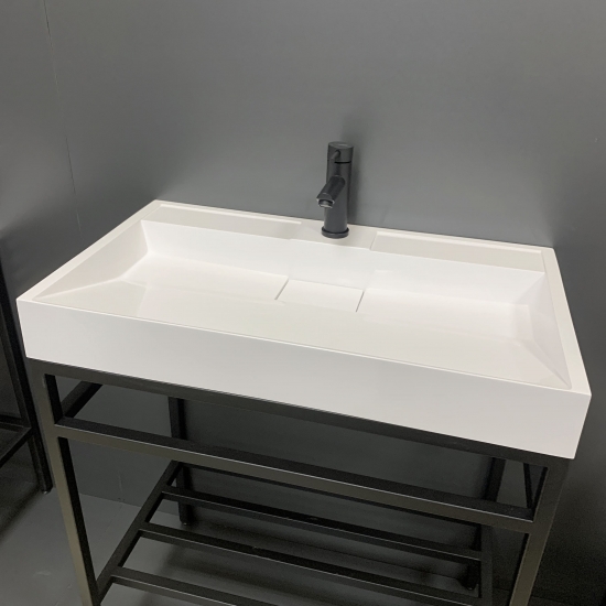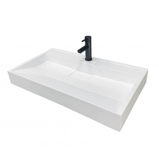 Опис Раковина, умивальник Adamant VISION, штучний камінь, прямокут., з отвором для змішувача, без переливу, 800х455х110мм, накладний, білий