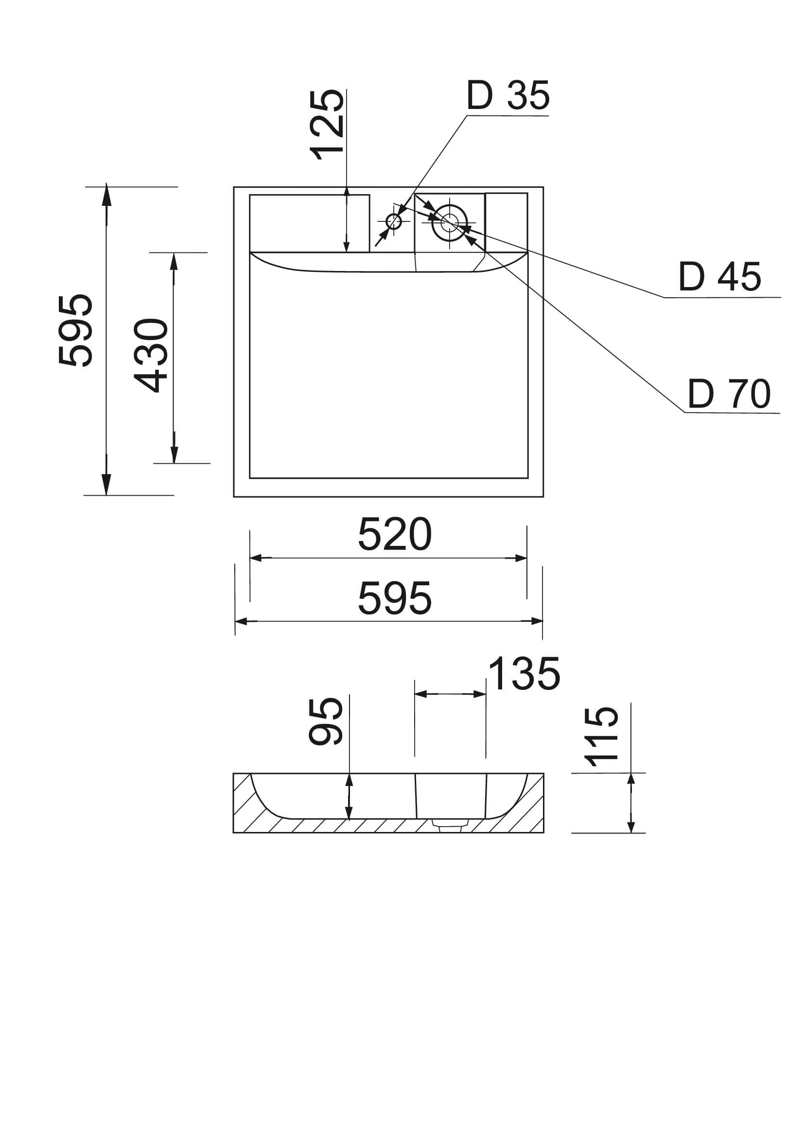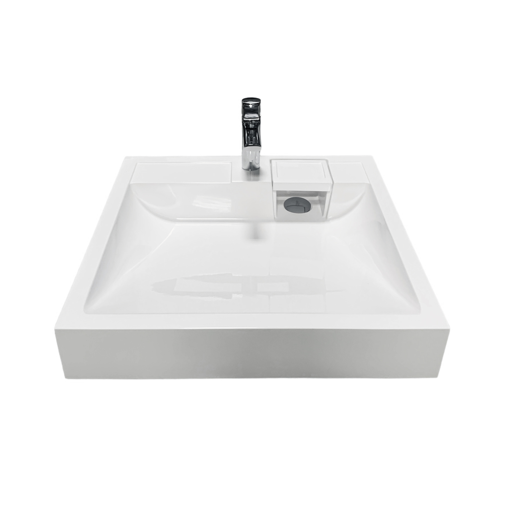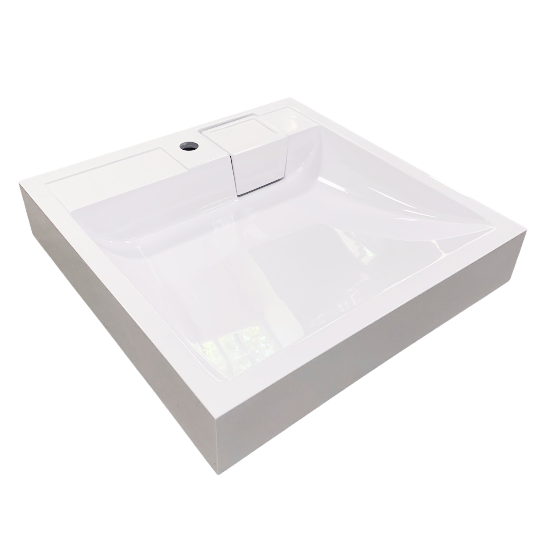 Опис Раковина, умивальник Adamant WASHER NEW, штучний камінь, прямокут., з отвором для змішувача, без переливу, 595х595х115мм, накладний, білий