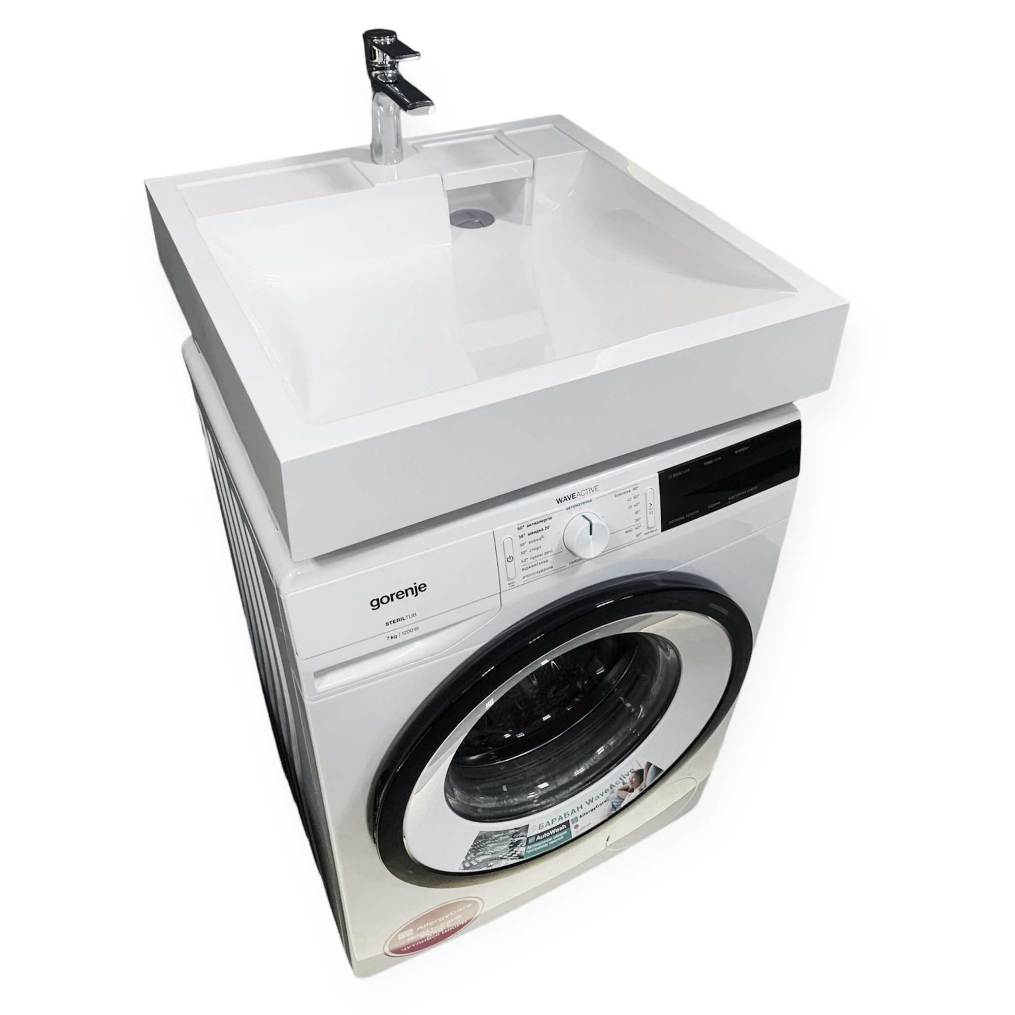 Умивальник Adamant Washer New прямокутної форми з білого штучного каменю формує практичне рішення для ванних приміщень. Розмір 595×595×115 мм з отвором для змішувача дозволяє легко інтегрувати змішувач без переливу. Накладний спосіб монтажу на тумбу з комплектом кріплень забезпечує стабільне розміщення.