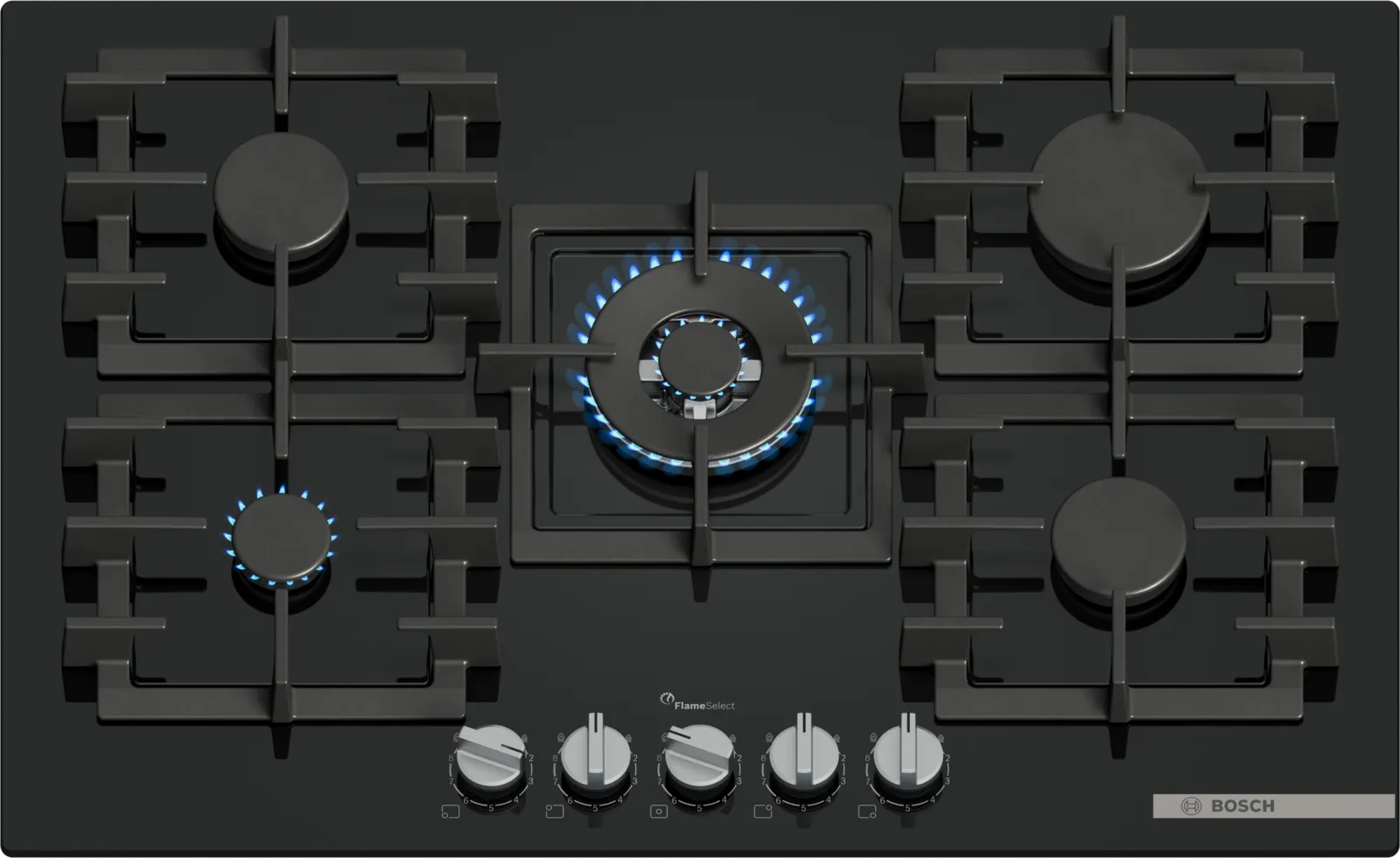 Варильна поверхня Bosch газова на склі, 75см, чавун, чорний