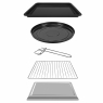 У наборі є все необхідне: прямокутне емальоване деко, кругле деко, решітка для гриля, піддон для збору крихт і рідин, а також ергономічне руків’я для безпечного виймання аксесуарів. Таке оснащення дає змогу використовувати пристрій буквально «з коробки» – без додаткових витрат на аксесуари.