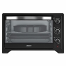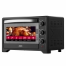 Лаконічний чорний корпус має стильний вигляд, гармонійно доповнюючи кухонний інтер’єр. Дверцята із загартованого скла витримують вплив високої температури, а нековзні ніжки забезпечують стійкість під час використання. Піч компактна, але містка: її розмір – 377 × 549 × 408 мм.