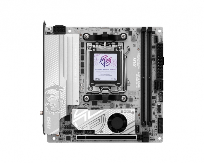 Плата має два слоти для пам’яті DDR5 з підтримкою частот до 10000+ МГц (OC), що відкриває можливості для екстремального розгону. Слот PCIe 5.0 x16 гарантує сумісність із найновішими відеокартами, а два M.2 (PCIe 5.0 і 4.0) забезпечують блискавичну роботу SSD-накопичувачів.