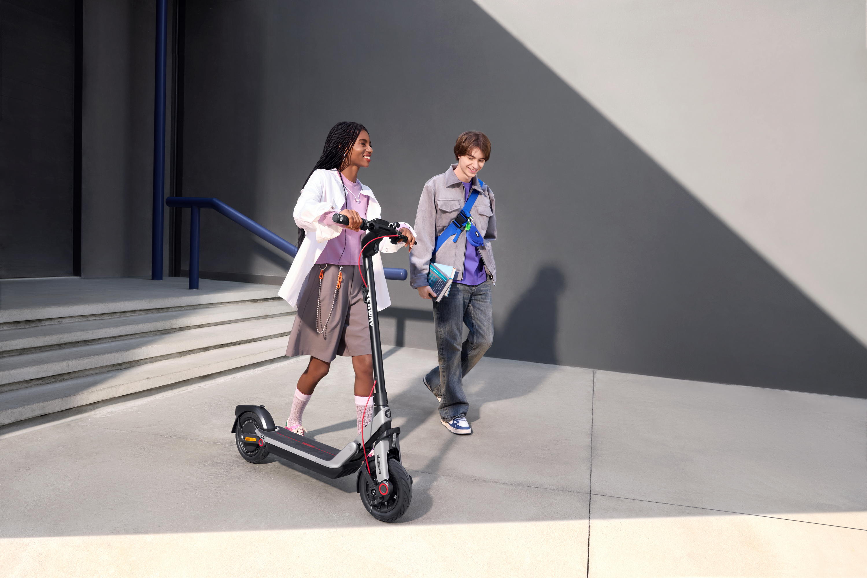 Segway-Ninebot E3 поєднує сучасний дизайн, технологічність та комфорт у щоденних поїздках. Завдяки двигуну потужністю 800 Вт і запасу ходу до 45 км самокат підтримує стабільну швидкість навіть на підйомах до 18 %. Подвійна еластомерна підвіска зменшує вібрації, забезпечуючи плавність руху. Світловідбивачі з сертифікацією E-MARK підвищують помітність у темний час доби.