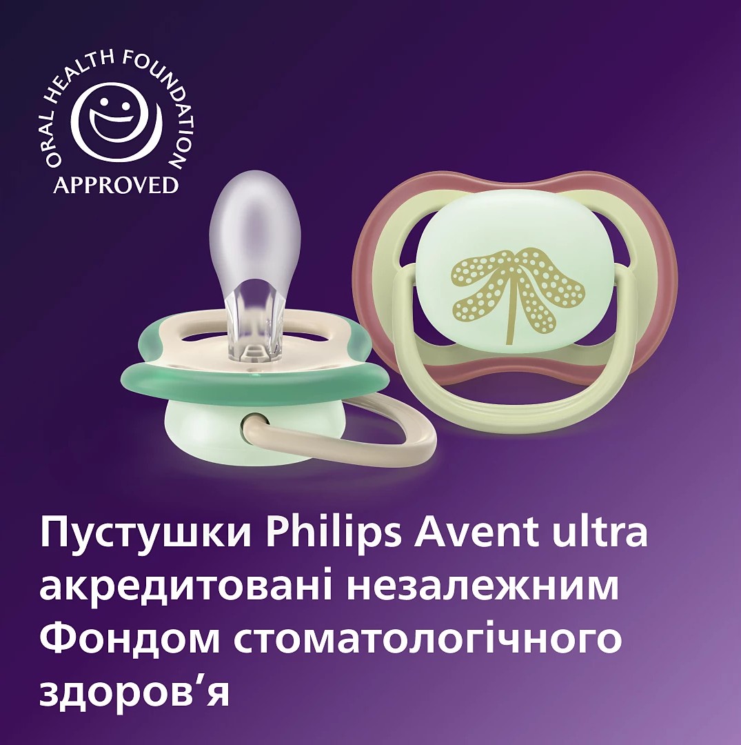 Опис Пустушка Avent Ultra Air Нічна, 6-18 міс., 2шт, нейтральний дизайн.