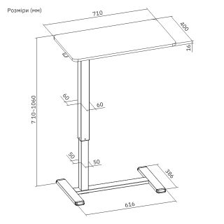 | Висота столу | 710 - 1060 мм /регулюється індивідуально |