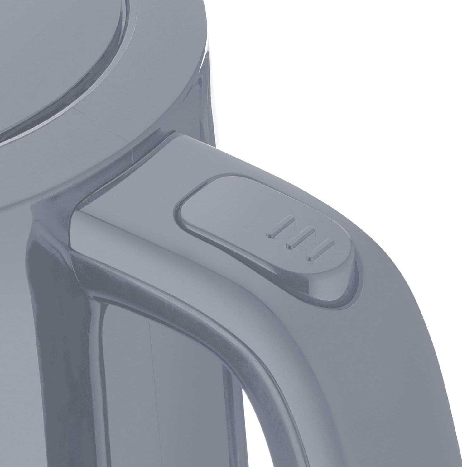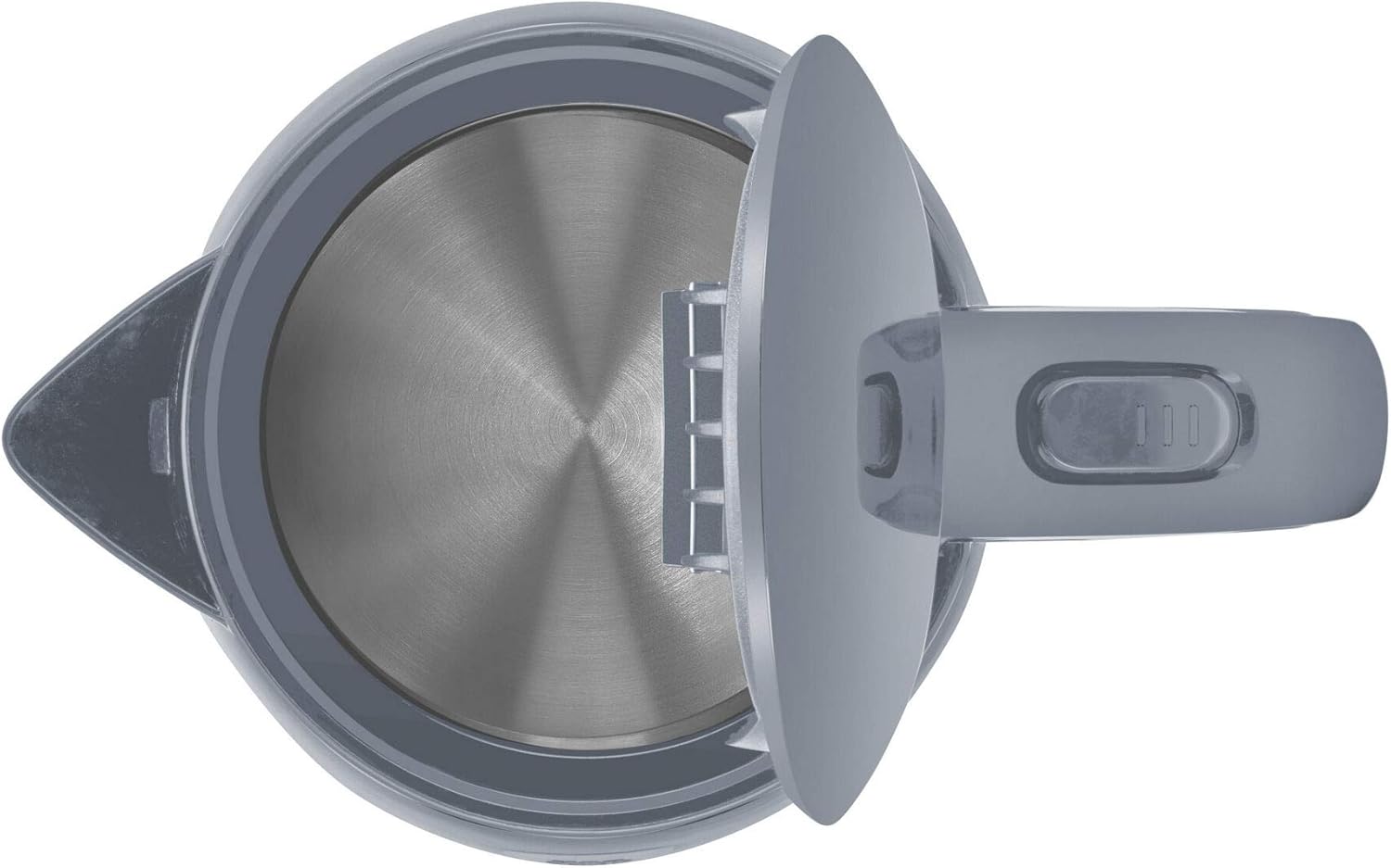 Amica KF1013 — компактний електрочайник на 1.7 л, що кип’ятить воду за мить з потужністю до 2200 Вт і зачаровує жовтим підсвічуванням! Пластиковий сірий корпус з прогумованими ніжками стоїть як скеля, а зручна кнопка кришки та 360° обертання роблять його улюбленцем кухні. Фільтр проти накипу та індикатор рівня — для безтурботного чаювання!