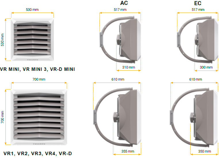 Опис Водяний нагрівач Volcano VR MINI енергоефективний двигун EC, 3-20 кВт, 2100 м3/год