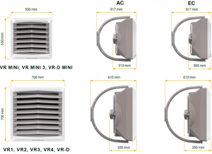 Технічні характеристики Volcano Водяний нагрівач VR3 енергоефективний двигун EC, 13-75 кВт, 5700 м3/год: