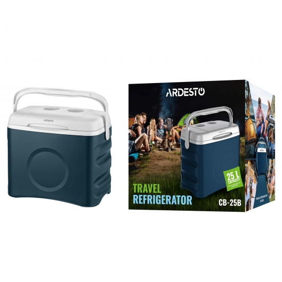 Дорожній холодильник ARDESTO CB-25B стане надійним супутником у подорожах чи під час відпочинку просто неба. Модель об’ємом 25 л поєднує сучасний дизайн, практичність і зручність користування. Завдяки теплоізоляції з PU (поліуретану) вона зберігає температуру всередині, підтримуючи прохолоду або тепло за принципом термобокса. Це дає змогу транспортувати продукти та напої, не турбуючись щодо їх свіжості. А вдома холодильник стане в пригоді під час відключень електроенергії, коли потрібно зберегти запаси без ризику псування.