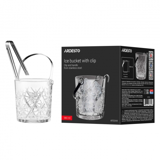 Відро для льоду зі щипцями ARDESTO Alba 980мл, прозорий (AR5044)