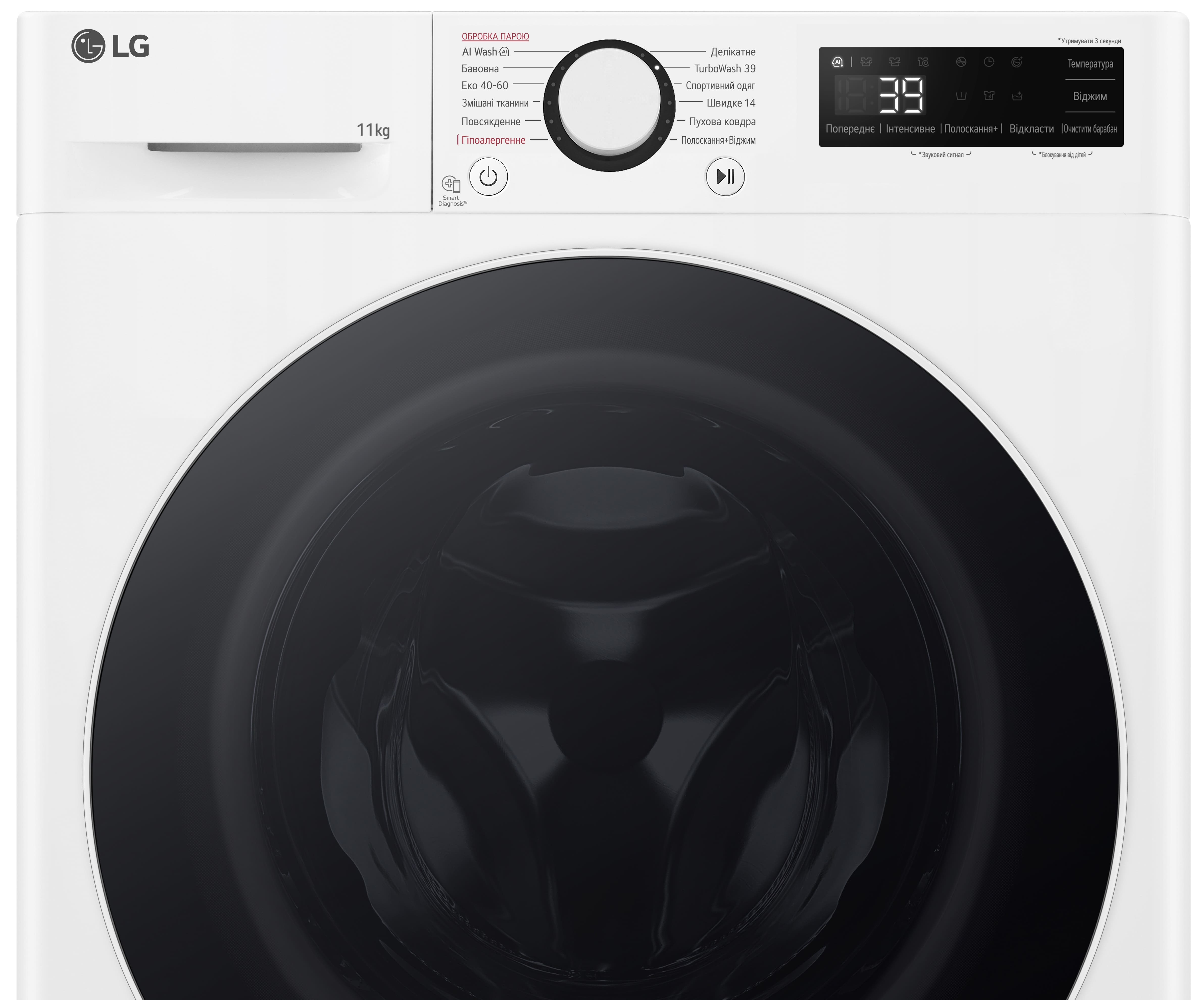Пральна машина LG фронтальна, 11кг, 1400, A, 57см, дисплей, пара, інвертор, білий