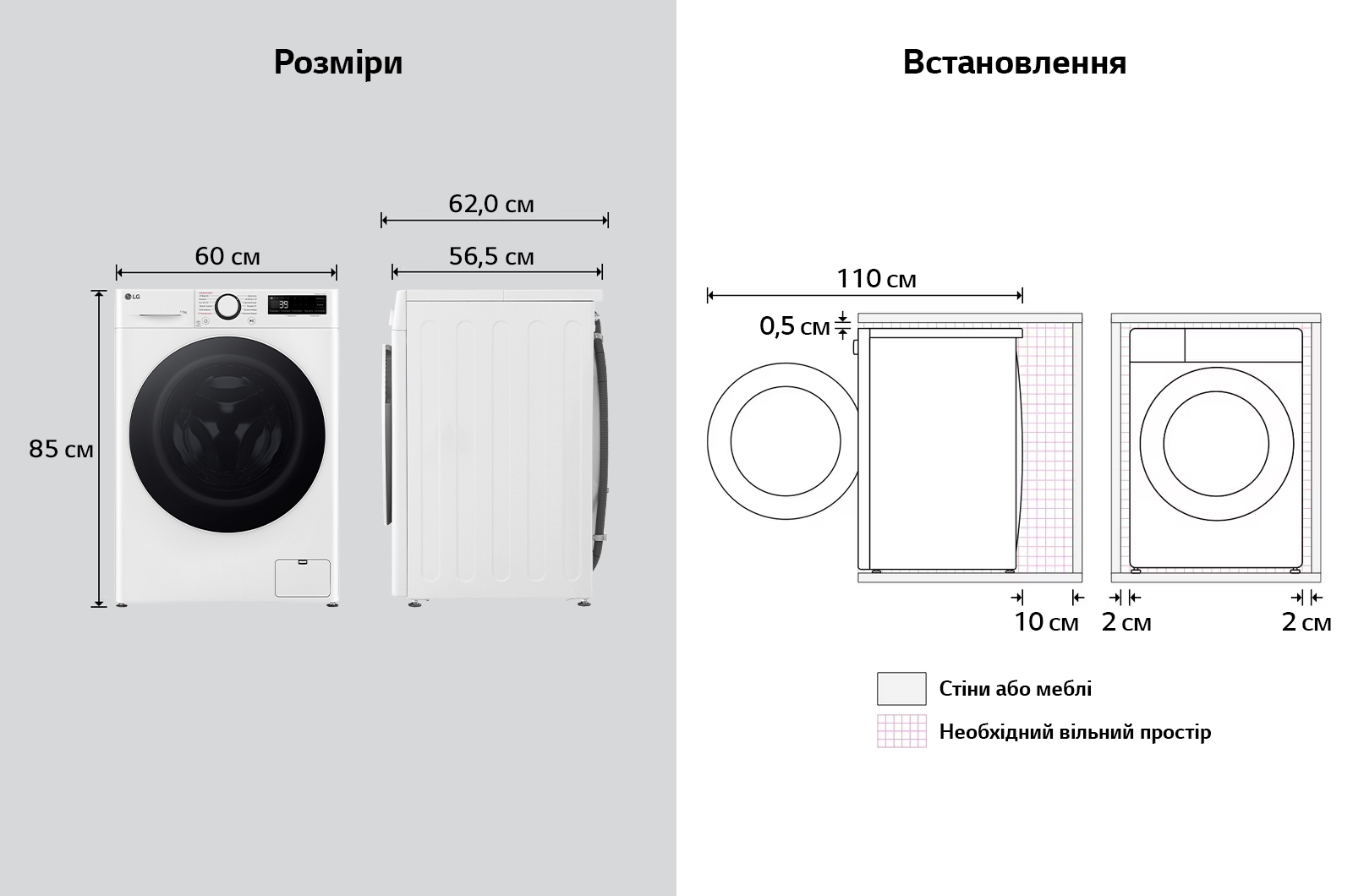 Головна - Побутова техніка, інструменти та товари для дому - Велика побутова техніка - Пральні машини - LG - Пральна машина фронтальна, 11кг, 1400, A, 57см, дисплей, пара, інвертор, білий