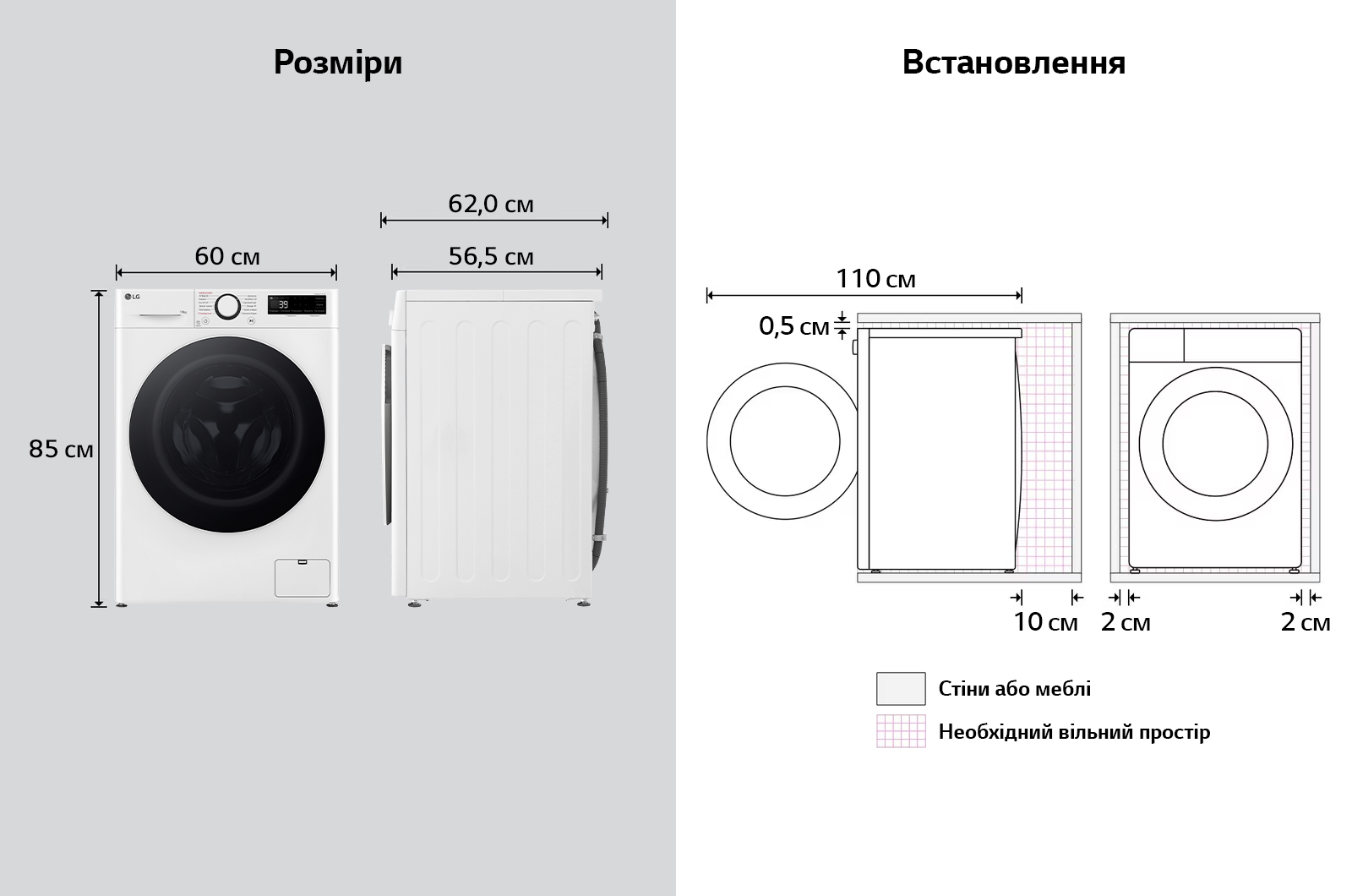Головна - Побутова техніка, інструменти та товари для дому - Велика побутова техніка - Пральні машини - LG - Пральна машина фронтальна, 10кг, 1400, A, 57см, дисплей, пара, інвертор, білий