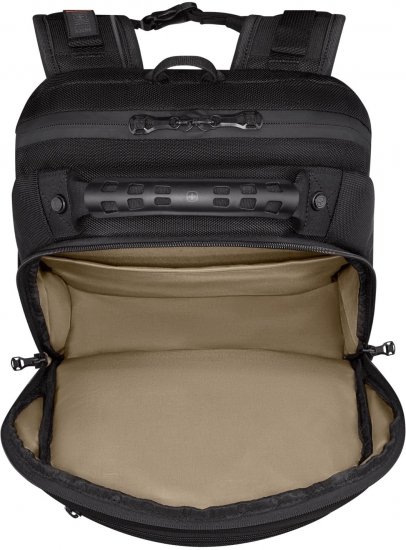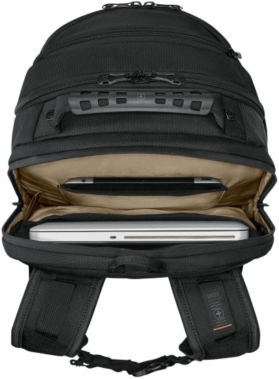 Рюкзак Wenger Legacy Black Series створений для активних професіоналів і щоденного використання. Міцна тканина з перероблених ПЕТ-пляшок поєднує екологічність і надійність. М’яке відділення Triple Protect надійно утримує ноутбук до 16", а окрема кишеня підходить для планшета до 10". Ергономічна спинка Airflow забезпечує комфорт і вентиляцію, а платформа CaseBase підтримує рюкзак у вертикальному положенні.