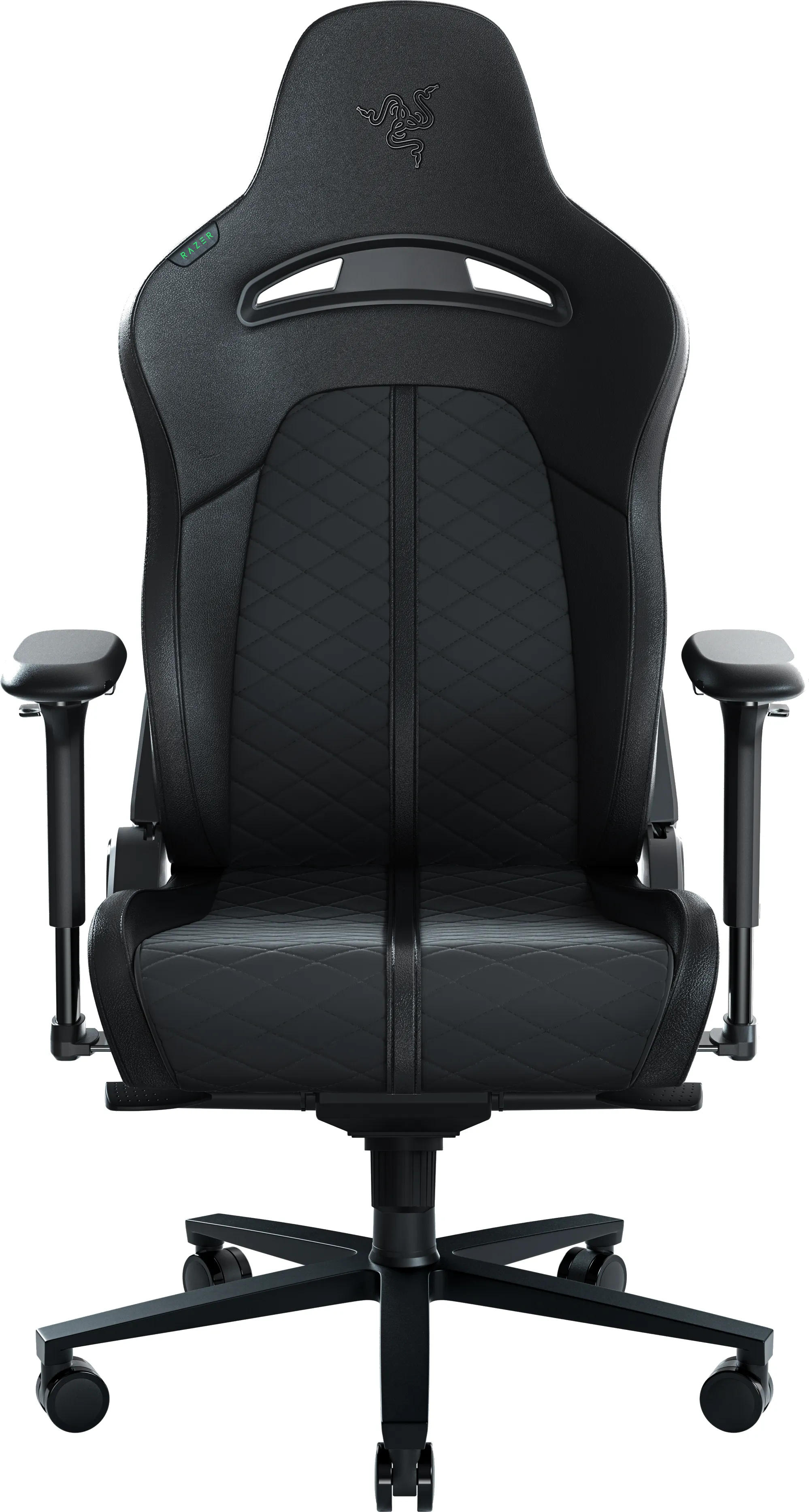 Razer Enki має унікальну конструкцію з плечовими дугами під кутом 110° і широким 21-дюймовим сидінням, що сприяє правильному розподілу ваги та комфорту протягом усього дня. Вбудована поперекова підтримка природно вирівнює спину, зменшуючи навантаження на поперек. М’яка піна з ефектом пам’яті в підголовнику адаптується до форми тіла, а комбінація екошкіри двох типів забезпечує довговічність і приємні відчуття на дотик.