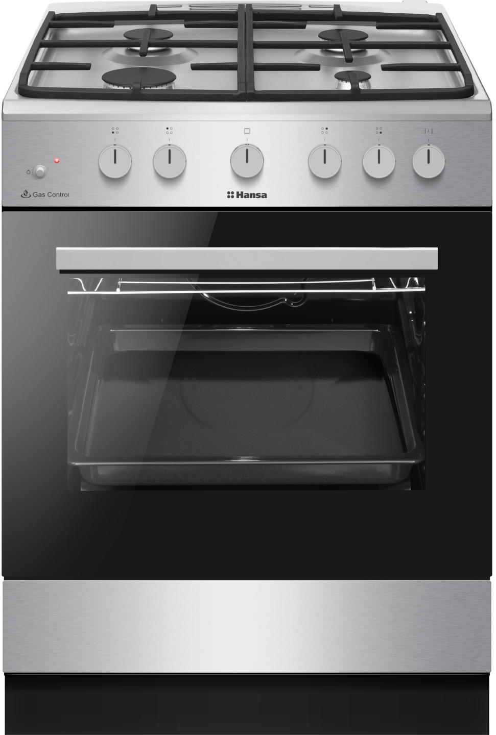The Hansa FCGS61129H freestanding gas cooker combines a stainless-steel cooktop and a 70 L gas oven for everyday performance. Cast-iron grates ensure stability and durability. The oven heats up to 150°C in just four minutes, features internal lighting, and includes printed recipes on the door glass. With automatic ignition and flame safety, it’s designed for convenience and efficiency. Rated A for energy efficiency.