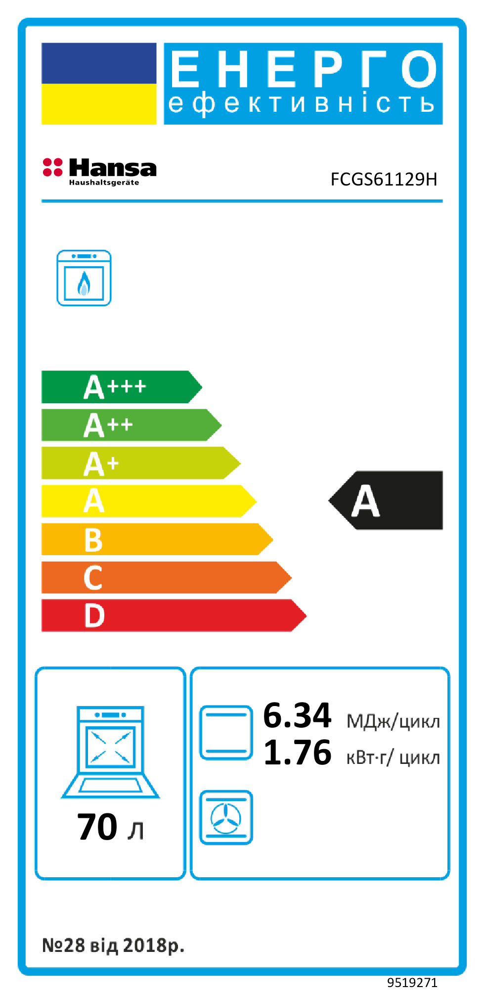 | Обсяг духовки | 70 л |