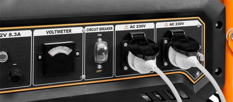 Генератор Neo Tools оснащений чотиритактним бензиновим двигуном потужністю 5.1 кВт (7 к.с.) та електричним запуском. Система AVR автоматично підтримує стабільний рівень напруги, захищаючи підключені пристрої від перепадів струму. Завдяки мідній обмотці, генератор працює стабільно навіть під навантаженням, а датчики рівня оливи та захист від перевантаження підвищують безпеку експлуатації.