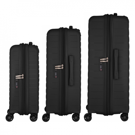 Жорсткий корпус виготовлено зі 100% поліпропілену, що забезпечує надзвичайну міцність за мінімальної ваги. Усередині валіз передбачено розділювачі та регульовані пакувальні паски для надійної фіксації речей, це організовує і впорядковує поклажу, і в такий спосіб забезпечується високий рівень комфорту та безпеки, що зробить подорож безтурботною.