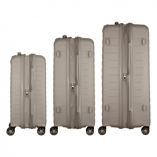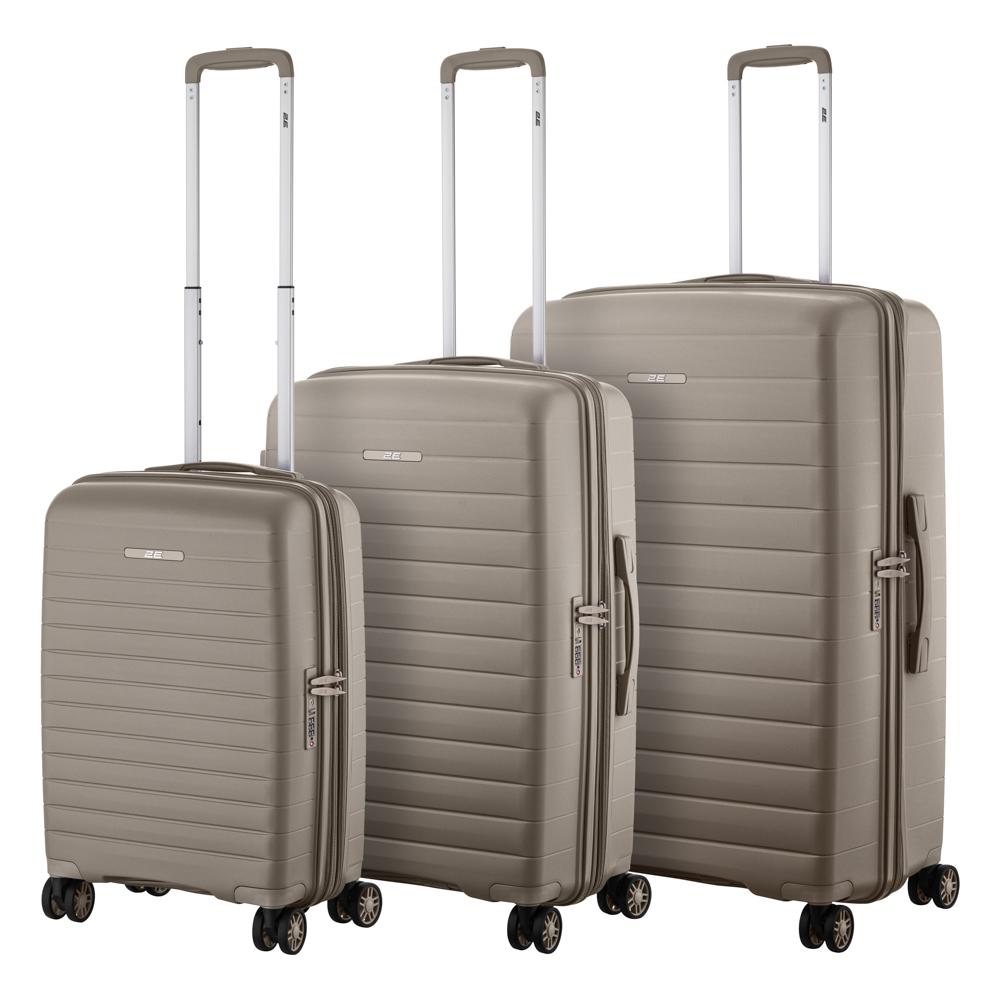 Набір валіз 2E, Aero, поліпропілен, (L+M+S), TSA, 4 колеса, EXP, сіро-коричневий