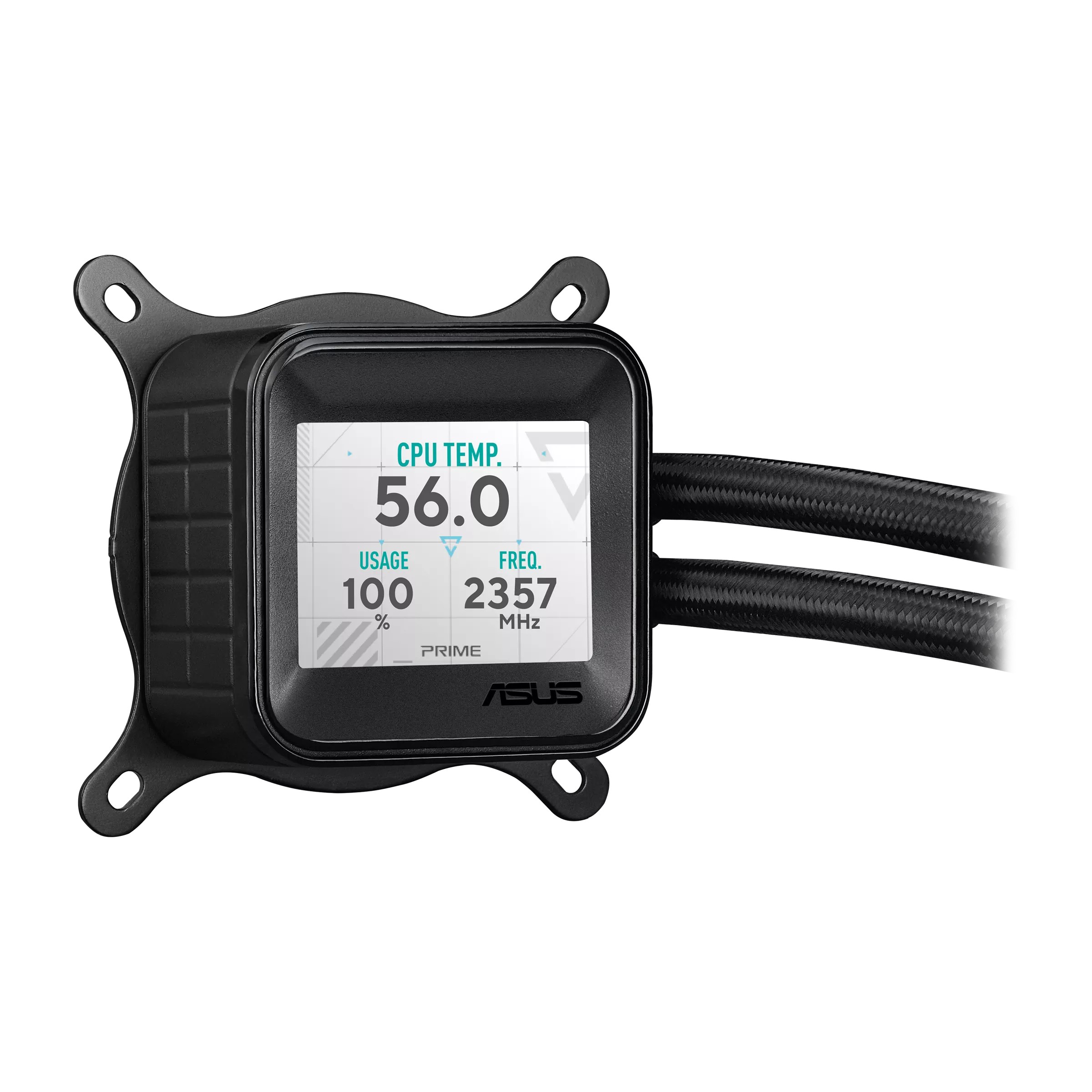 Попередньо встановлені на Prime LC 360 ARGB LCD вентилятори з послідовним підключенням спрощують процес монтажу системи охолодження. За допомогою лише одного кабелю можна підключити як ARGB-підсвічування, так і вентилятори, що спрощує прокладання кабелів усередині корпусу. Вентилятори відрізняються не лише стильним виглядом, але й забезпечують потужний і стабільний потік повітря для ефективного охолодження.