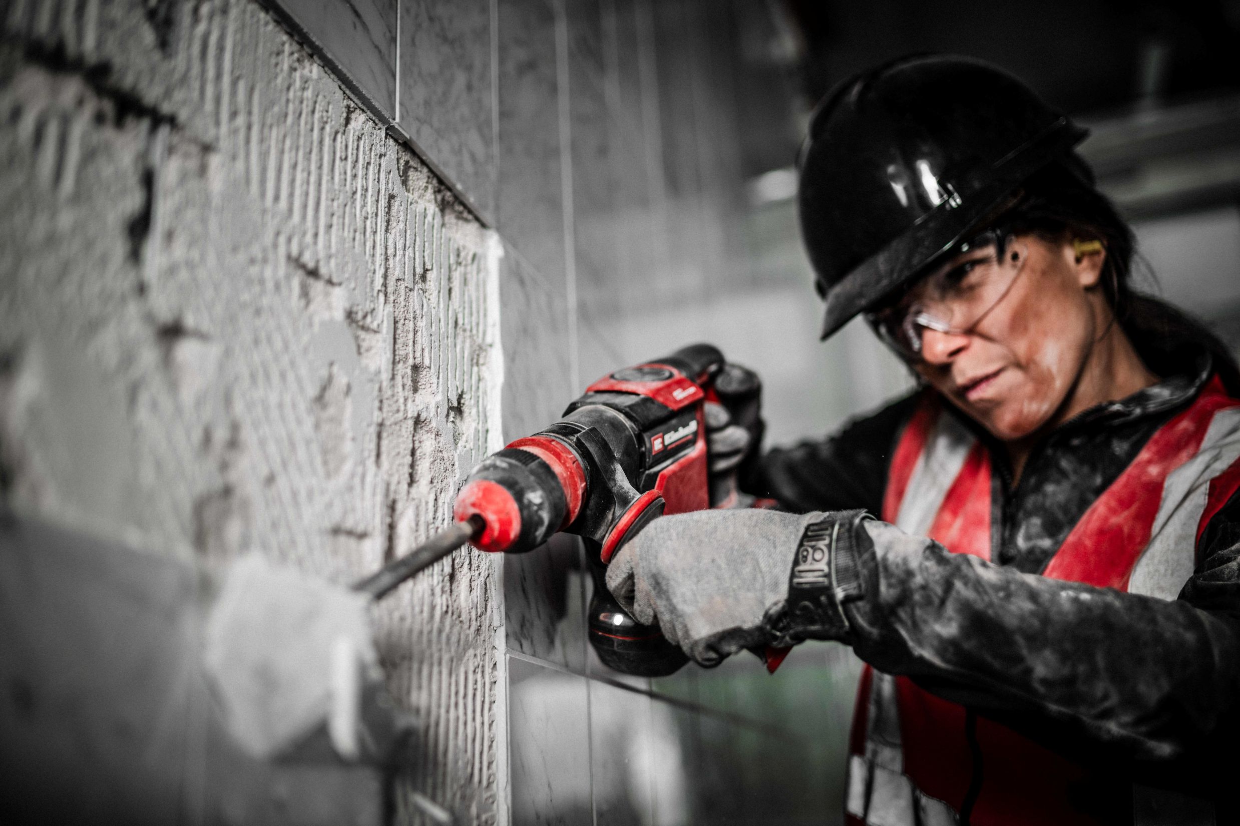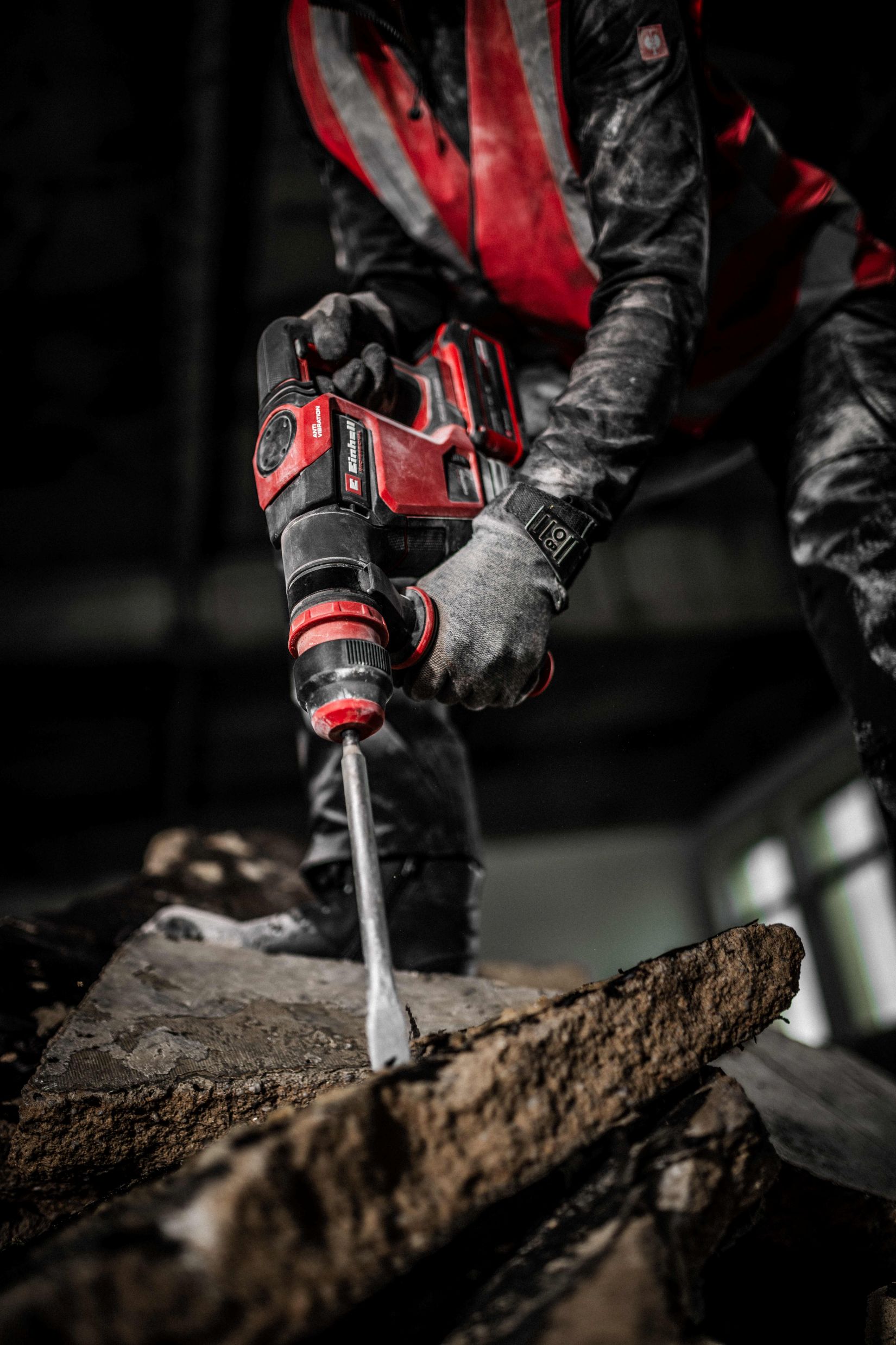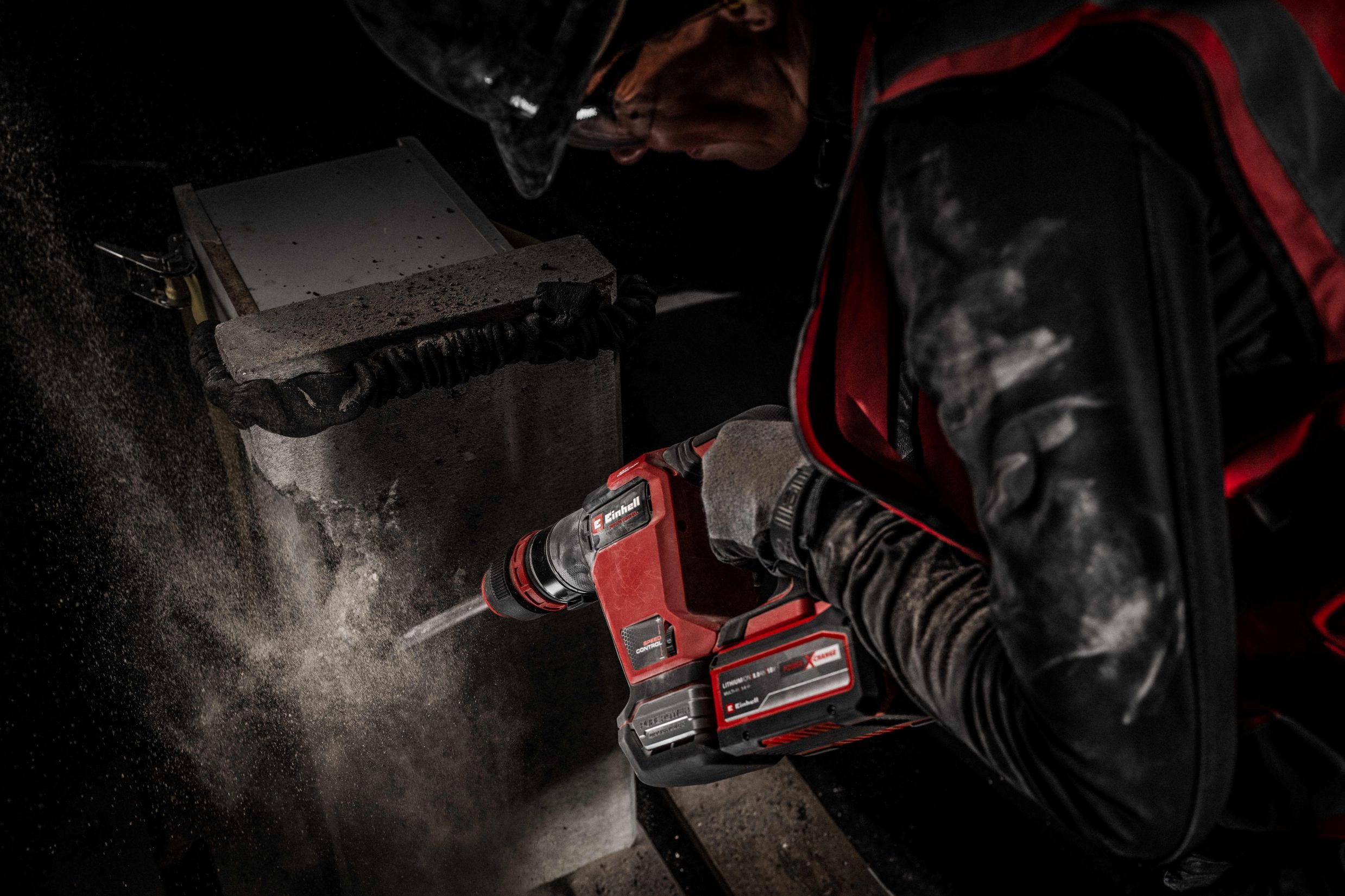 Einhell Professional TP-DH 18/4 Li BL-Solo — компактний акумуляторний відбійний молоток для легких демонтажних робіт і точного довбання. Енергія удару 4,0 Дж, безщітковий двигун і система Power X-Change забезпечують мобільність без мережі. SDS-Plus із напівавтоматикою пришвидшує заміну зубил, а 16-позиційне встановлення дає змогу точно задати кут.