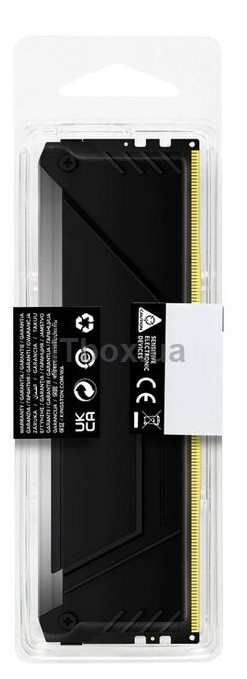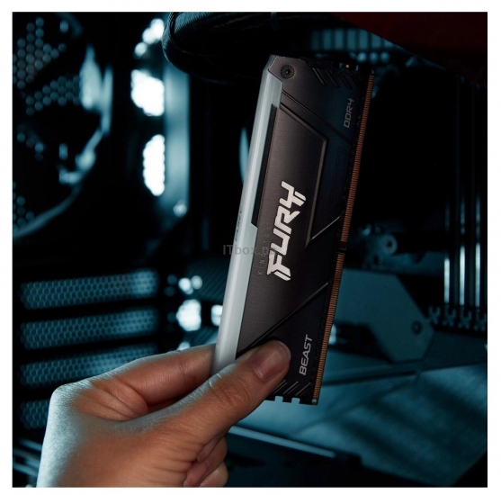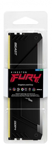 Модуль Kingston FURY Beast RGB DDR4 має двобічну архітектуру з шістнадцятьма мікросхемами, що гарантує стабільну роботу навіть за високих навантажень. Висота 43 мм дає змогу легко встановити модуль у більшості корпусів ПК. Алюмінієвий радіатор сприяє ефективному відведенню тепла, а RGB-підсвічування додає системі сучасного вигляду.