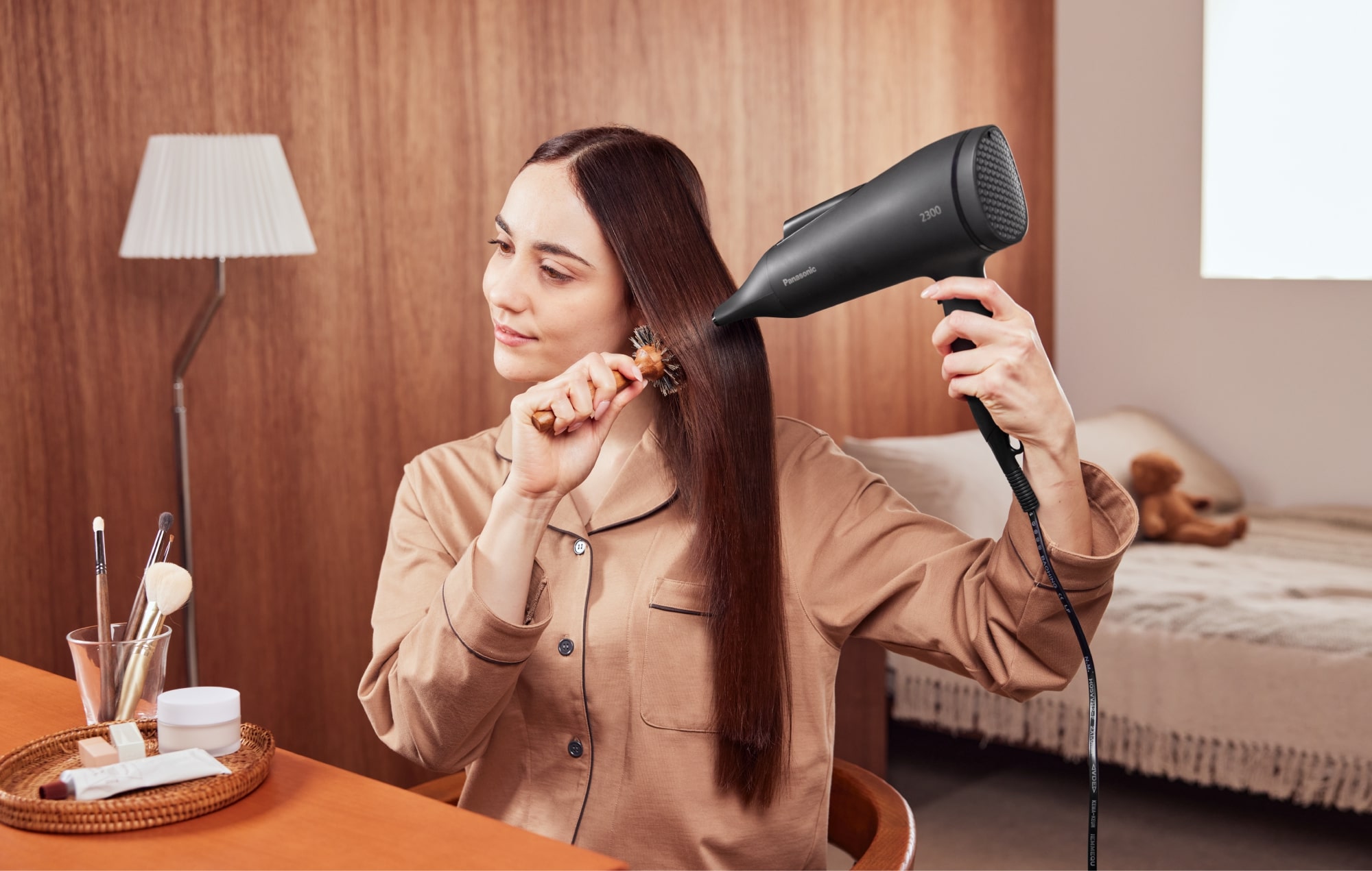 Фен Panasonic EH-NE85-K865 — поєднання продуктивності та дбайливого догляду для щоденного використання. Потужність 2300 Вт формує стабільний повітряний потік, який пришвидшує висушування волосся без зайвого перегріву. Насадка Air Boost створює підвищений тиск і концентрує потік, тож сушіння відбувається точково та контрольовано — зручно опрацьовувати корені, чуб чи окремі пасма.