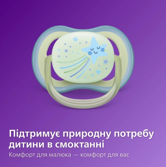 Опис Пустушка Avent Ultra Air Нічна, 0-6 міс., 2шт, дизайн нейтральний