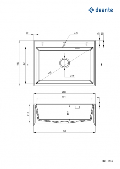 Мийка кухонна Deante Eridan, 700х520х210мм (ZQE_G103)