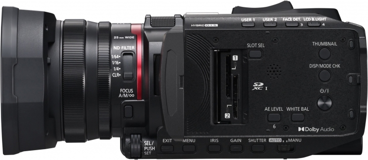 Об’єктив охоплює діапазон фокусних відстаней від ширококутного режиму 25 мм до режиму телефото 600 мм із 24-кратним масштабуванням. Завдяки технології i.ZOOM відеокамера досягає 32-кратного масштабування з роздільною здатністю 4K та 48-кратного масштабування з роздільною здатністю FHD.