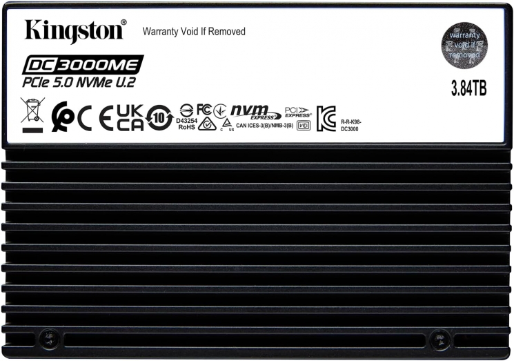 Kingston DC3000M у форм-факторі U.2 має інтерфейс PCIe Gen5 x4, що забезпечує високу швидкодію в інтенсивних робочих середовищах. Архітектура з 3D eTLC NAND поєднує місткість 3.84 ТБ із надійністю, необхідною для постійного навантаження. Сумісність із PCIe 4.0 спрощує інтеграцію з існуючими серверними платформами.