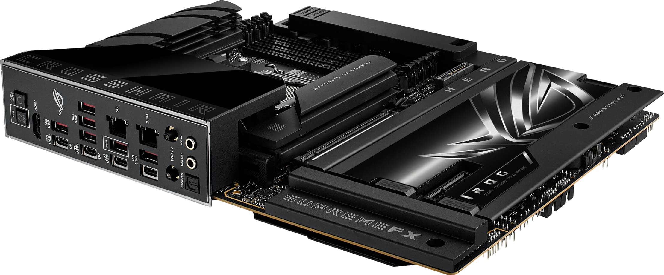 ASUS ROG Crosshair X870E Hero BTF — флагманська материнська плата з інноваційною системою прихованого підключення рознімів для створення акуратного вигляду збірки. Оснащена чипсетом AMD X870E, підтримує процесори Ryzen 9000, 8000 та 7000, пам’ять DDR5 до 256 ГБ і PCIe 5.0. Потужна система живлення, Wi-Fi 7, дві мережеві карти 5 Гбіт + 2.5 Гбіт і технології AI Overclocking та AI Cooling II забезпечують виняткову продуктивність і тишу під час роботи.