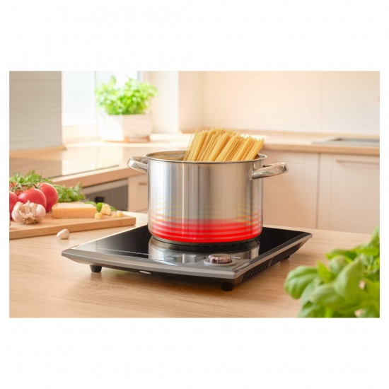 Індукційна плита Sencor SCP 3414GY з однією конфоркою має потужність 2000 Вт і забезпечує рівномірне нагрівання посуду. Сенсорне та механічне керування спрощує використання, а десять рівнів температури дозволяють обрати потрібний режим. Таймер допомагає контролювати процес приготування до трьох годин. Завдяки компактній конструкції прилад легко розмістити або взяти із собою.