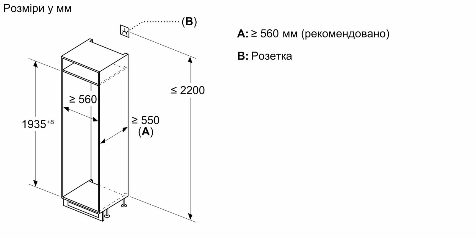 - Для кухонь із вбудованими меблями — збільшена місткість без зміни габаритів, рівномірне освітлення й автоматичне попередження про відчинені дверцята