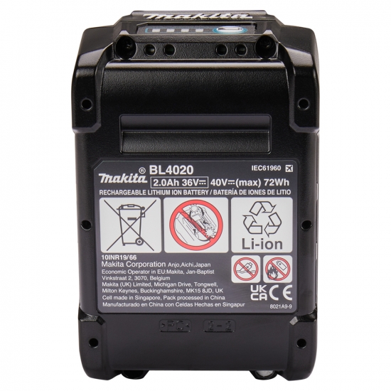 Акумулятор має індикатор рівня заряду з 4 світлодіодами для швидкого контролю. Сумісний лише з інструментами XGT, не підходить для LXT. Стійкий до ударів та вібрації завдяки міцному корпусу. Швидке охолодження під час роботи. Підтримує швидку зарядку з пристроями DC40RA. Термін служби до 1500 циклів.