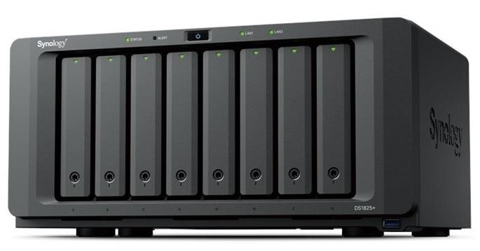 Рішення DS1825+ оснащено вбудованим мережним портом 2.5GbE і підтримує SSD- та HDD-диски SATA при встановленні у внутрішні відсіки 2,5"/3,5", а також диски M.2 NVMe через слоти M.2 для використання як кеш. Підтримка плат розширення забезпечує гнучкість конфігурації, підтримуючи швидше підключення до мережі.