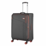 Корпус валізи виготовлено з міцного поліестеру, стійкого до зношування і впливу зовнішніх факторів. Тканина має фактурне плетіння, що не лише додає естетичності, а й підсилює міцність покриття. Усередині є еластичні пакувальні ремені для фіксації речей і внутрішня кишеня на блискавці для зберігання дрібниць. Конструкцією валізи передбачено жорсткий полегшений каркас, який забезпечує стабільність і водночас зберігає мінімальну вагу – лише 2,5 кг.