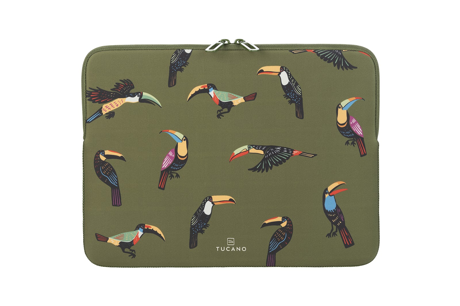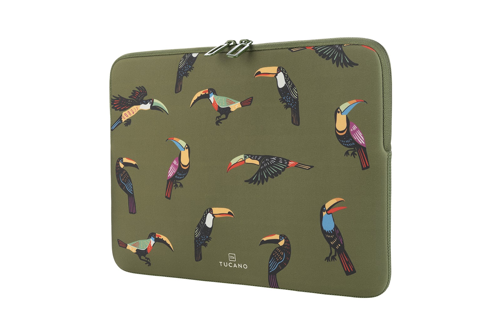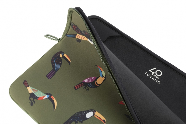 Чохол Tucano Tucani 13"/14" створено на честь 40-річчя Tucano. Модель виготовлена з міцного неопрену та прикрашена яскравим принтом із туканом. Спеціальна система проти випадкового вислизання забезпечує надійну фіксацію ноутбука під час транспортування. Плаский шов надає тонкий профіль і гарне прилягання. М’яка внутрішня підкладка запобігає подряпинам і зберігає охайний вигляд пристрою.