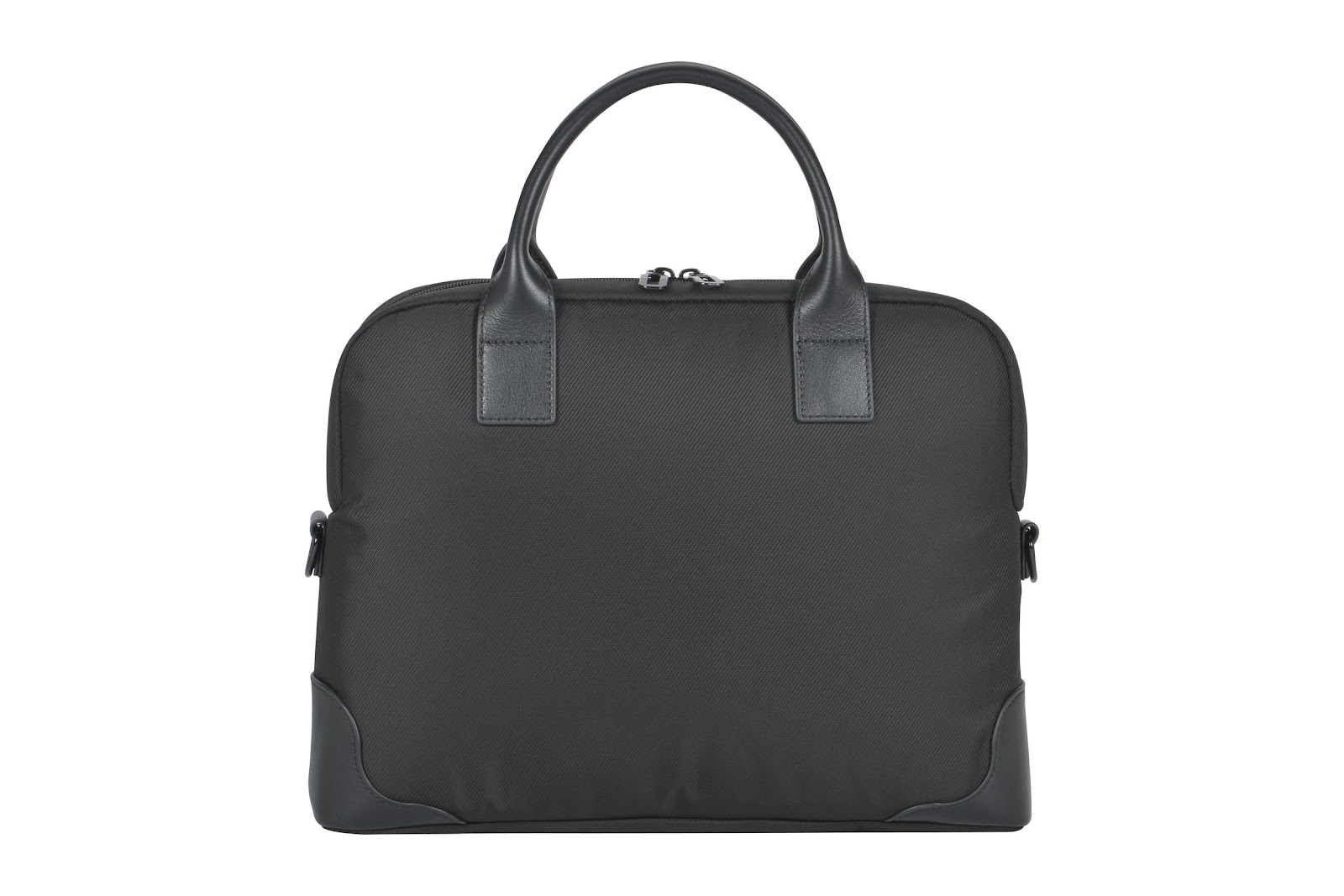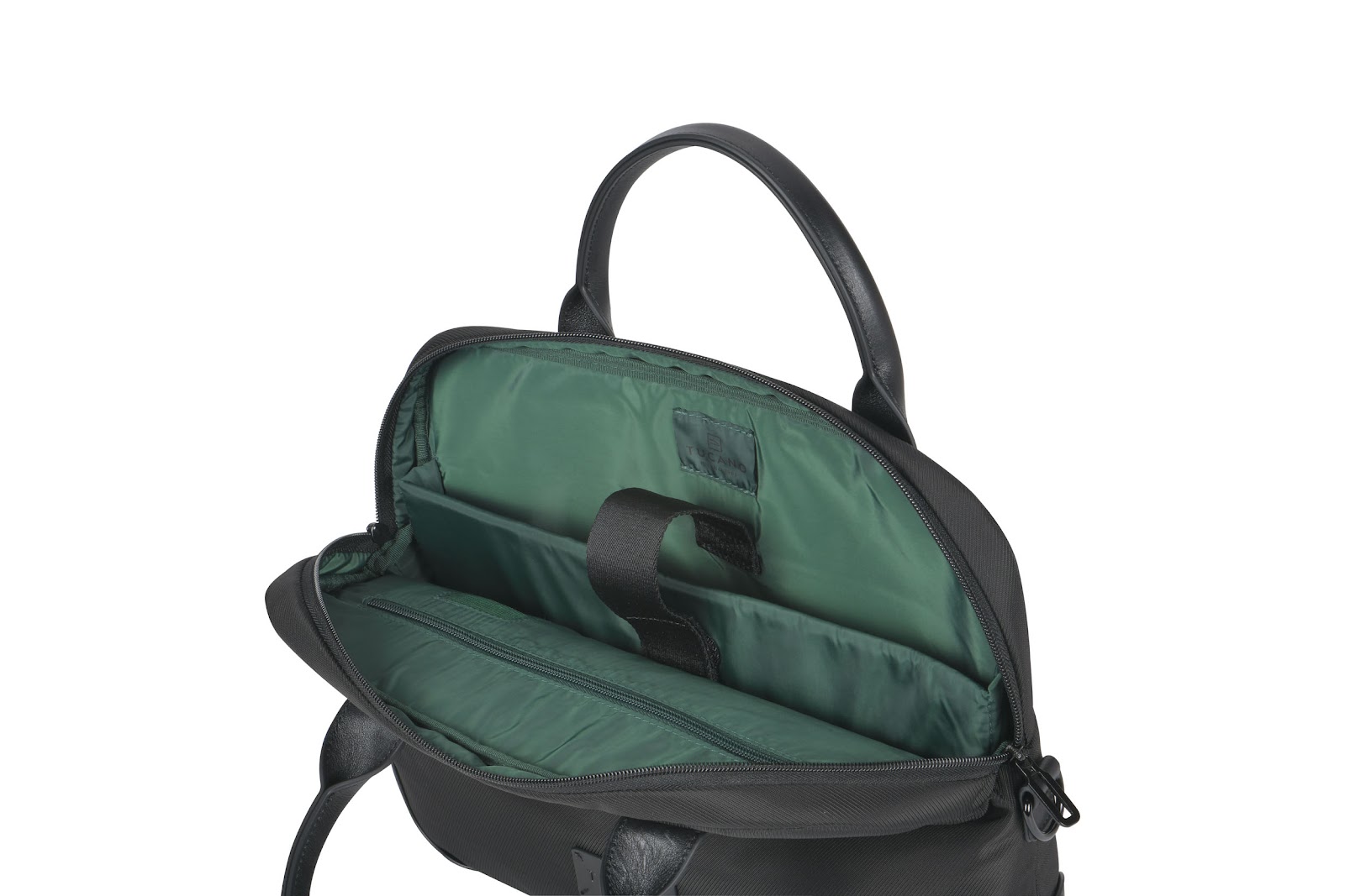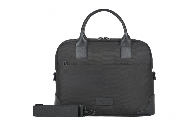 Сумка Tucano Fine 13"/14" поєднує елегантність і функціональність у щоденному використанні. Виготовлена з високотехнологічної тканини з переробленого пластику та оздоблена шкіряними вставками. Має два великі зовнішні відділення й подвійний внутрішній простір для ноутбука, документів і аксесуарів. М’яке відділення захищає лептоп від пошкоджень. Знімний плечовий ремінь забезпечує комфорт під час перенесення.