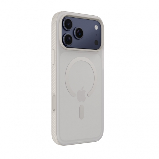 Протиковзна текстура поверхні гарантує впевнене утримання навіть однією рукою — ідеально для активного способу життя. Вигнуті краї виступають над екраном і камерою, захищаючи їх від подряпин при контакті з поверхнею. Поліровані кнопки (гучність, живлення, Action Button) зберігають природну чутливість, а сенсорна кнопка камери дозволяє миттєво активувати зйомку. Напівпрозоре покриття з м’яким фінішем (soft-touch) стійке до відбитків пальців, подряпин і пожовтіння з часом.